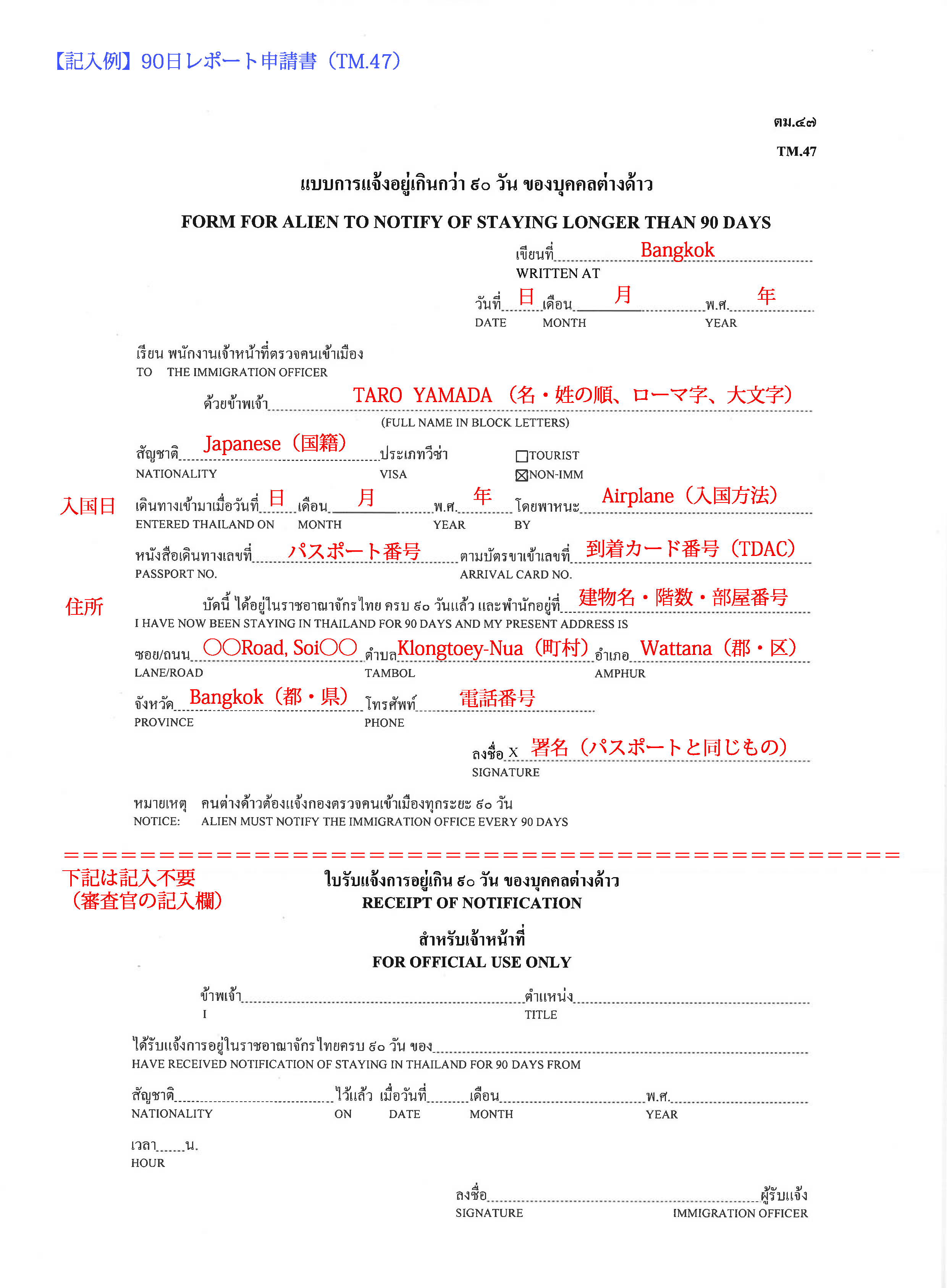 90日レポートは、タイで長期滞在する外国人にとって避けられない義務ですが、流れを理解していれば手続きは難しくありません。ですが、申請を忘れてしまうと罰金を支払わなくてはいけない恐れもあるため、期限日の管理を間違えないようにしましょう。