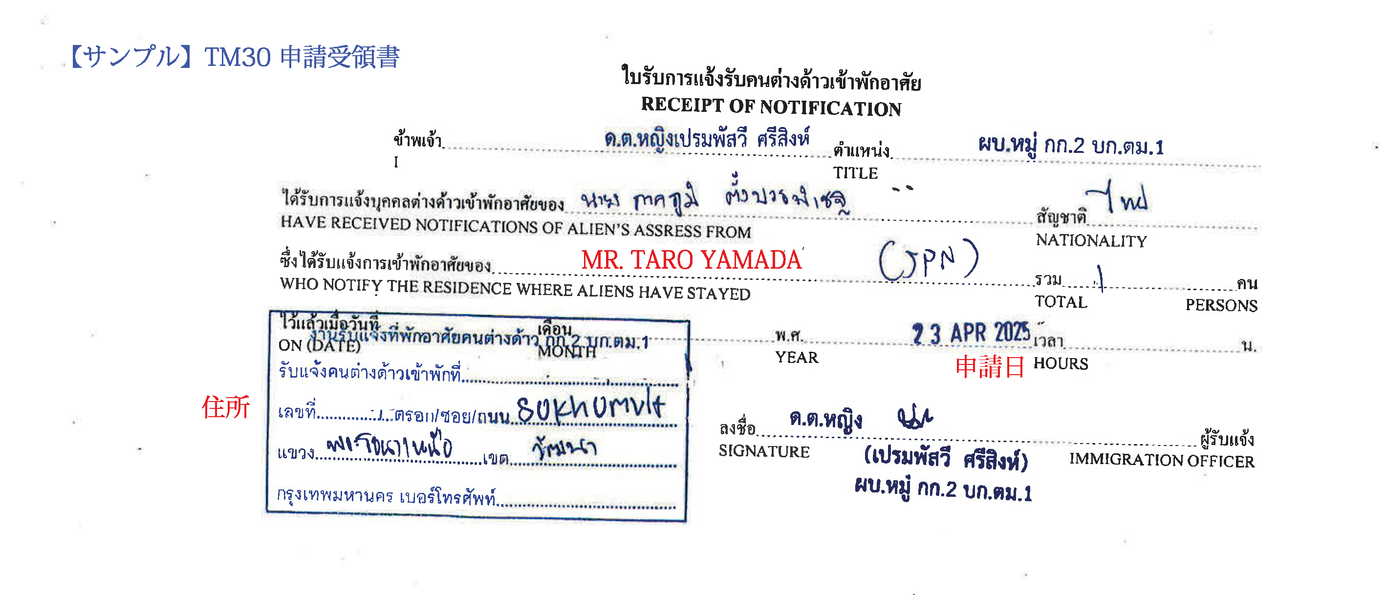 TM30の登録内容を確認(住所やパスポート番号に間違いはないか)