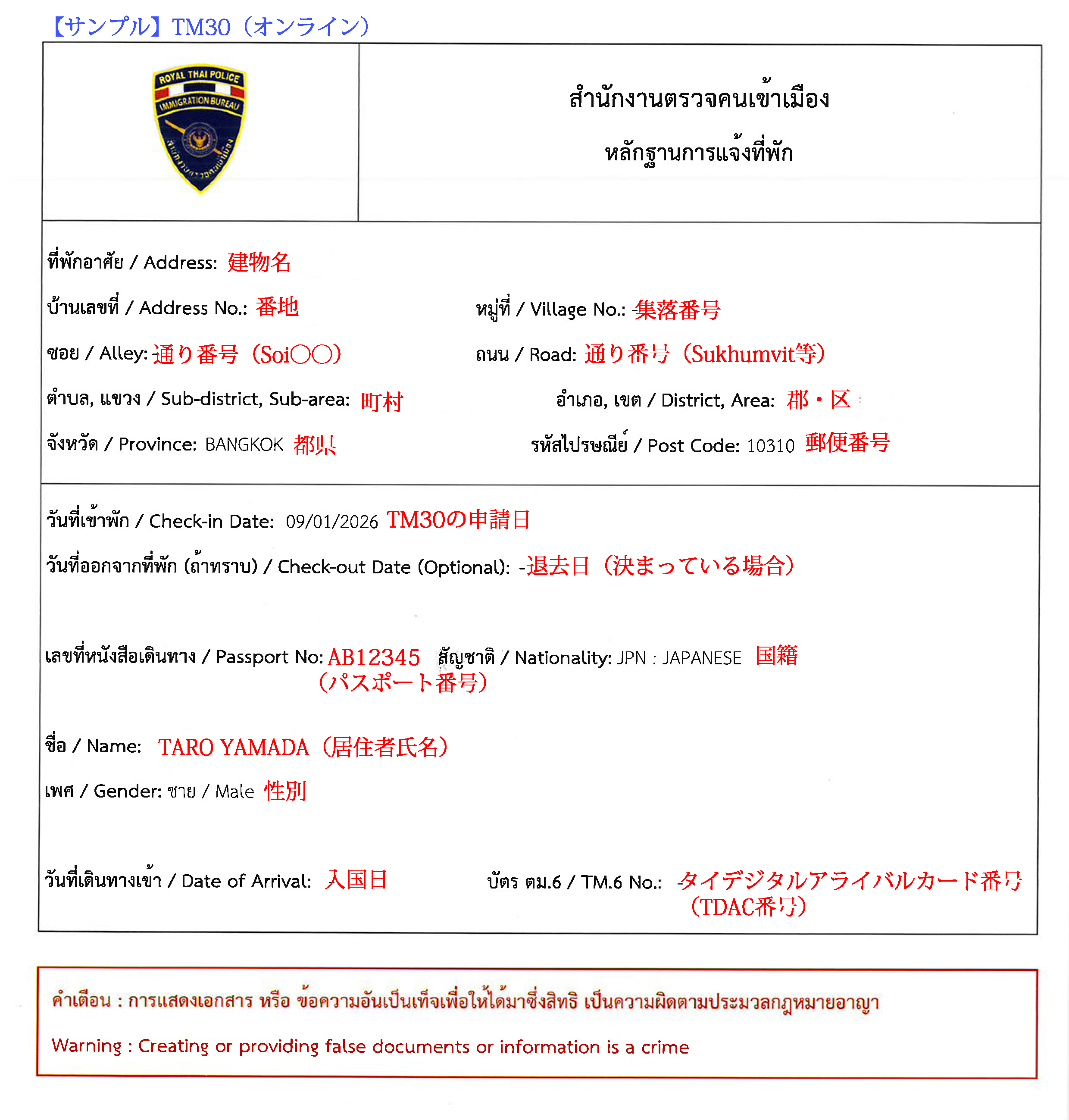 A. バンコクの移民局では TM30登録が必要 とされています。