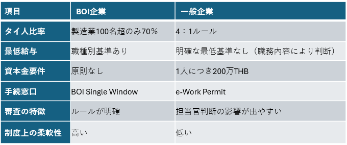 ・一般企業に適用される**4:1ルール(タイ人4名につき外国人1名)**が原則免除